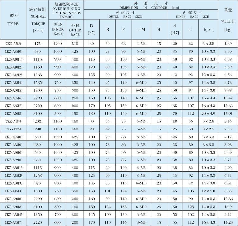 CKZ-A 楔塊式單向離合器